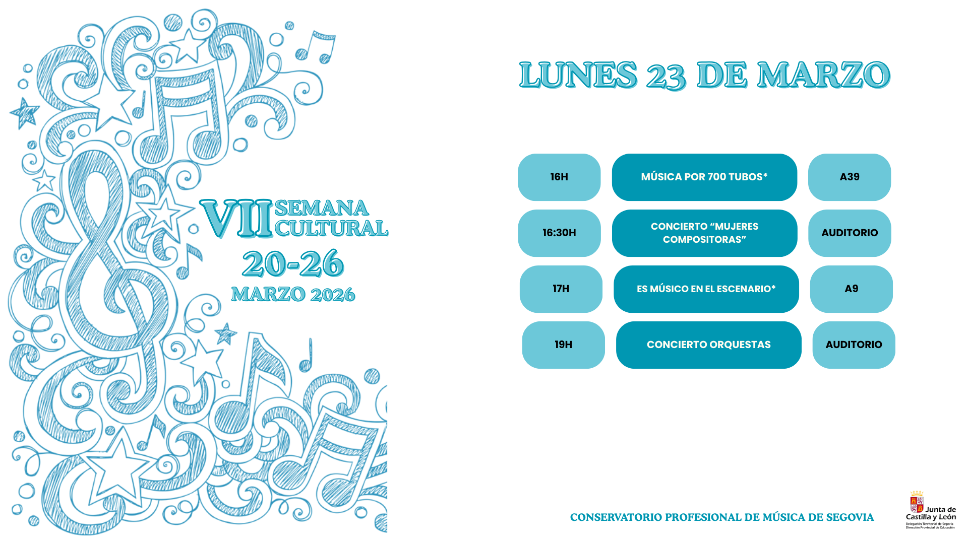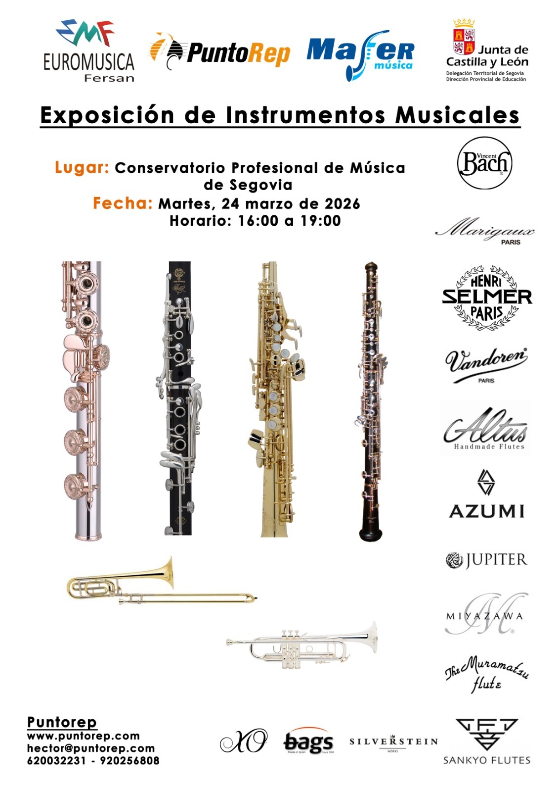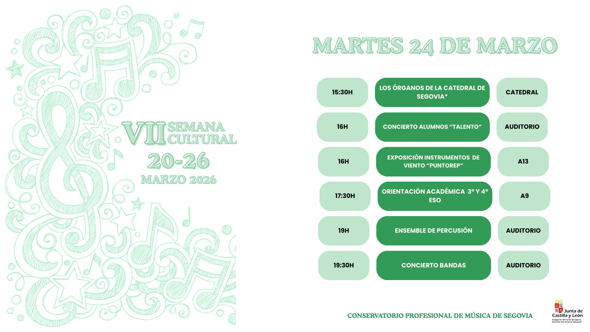 15:30H LOS ÓRGANOS DE LA CATEDRAL DE SEGOVIA* 16H CONCIERTO ALUMNOS "TALENTO" 16H EXPOSICIÓN INSTRUMENTOS DE VIENTO "PUNTOREP" |