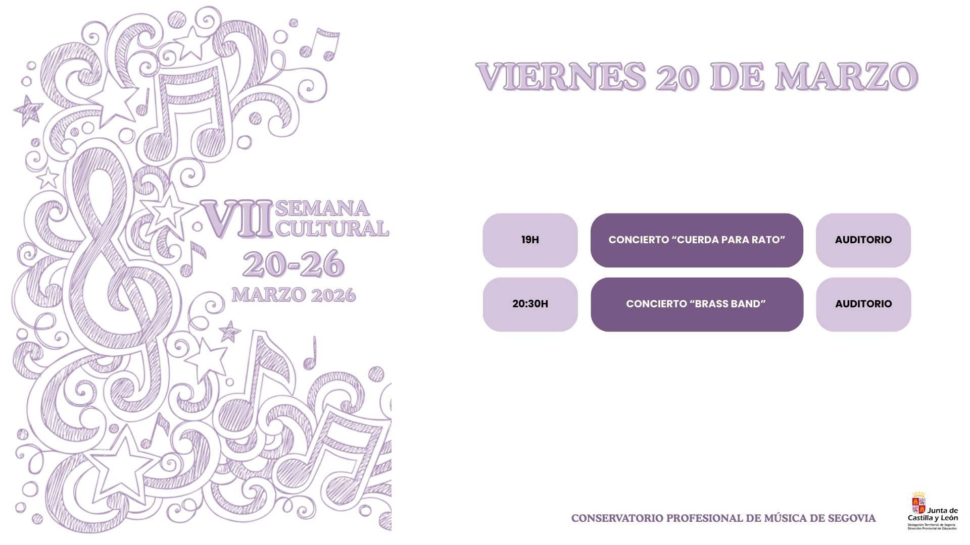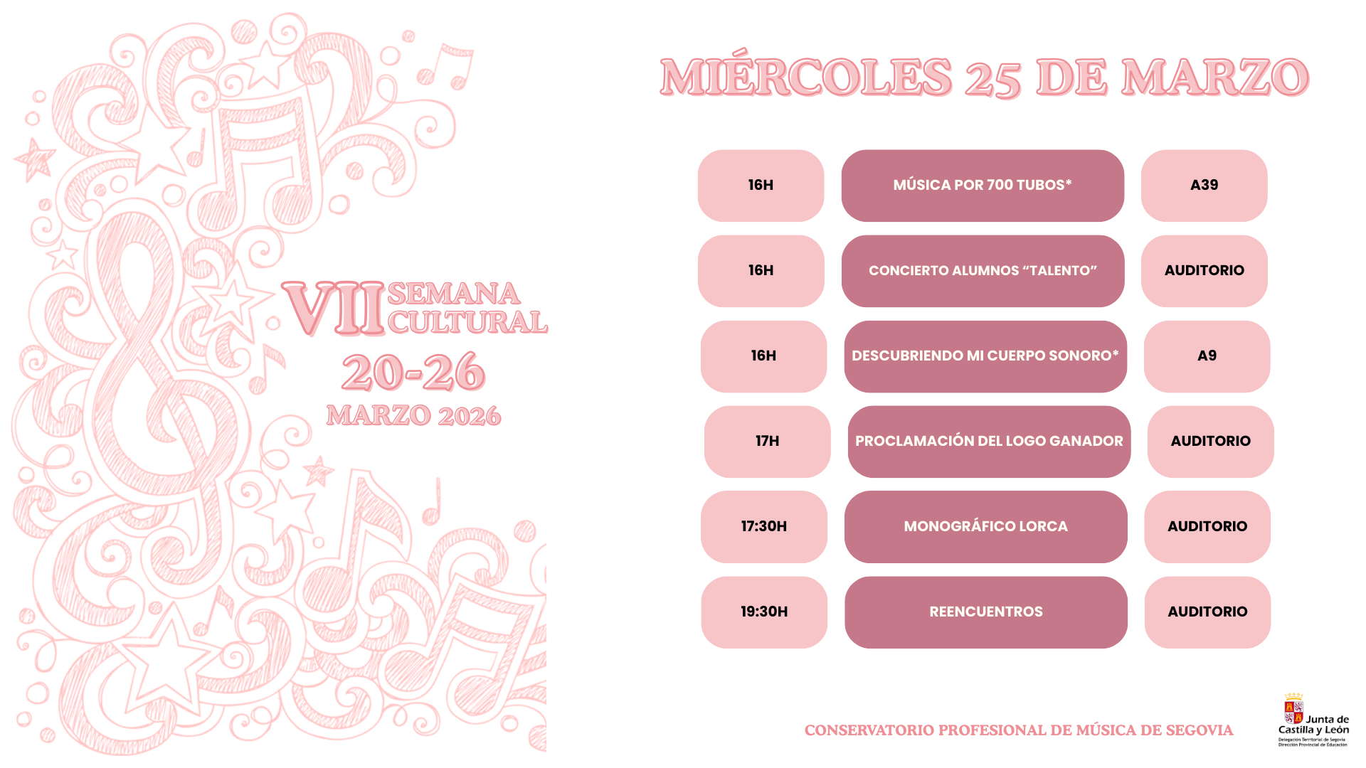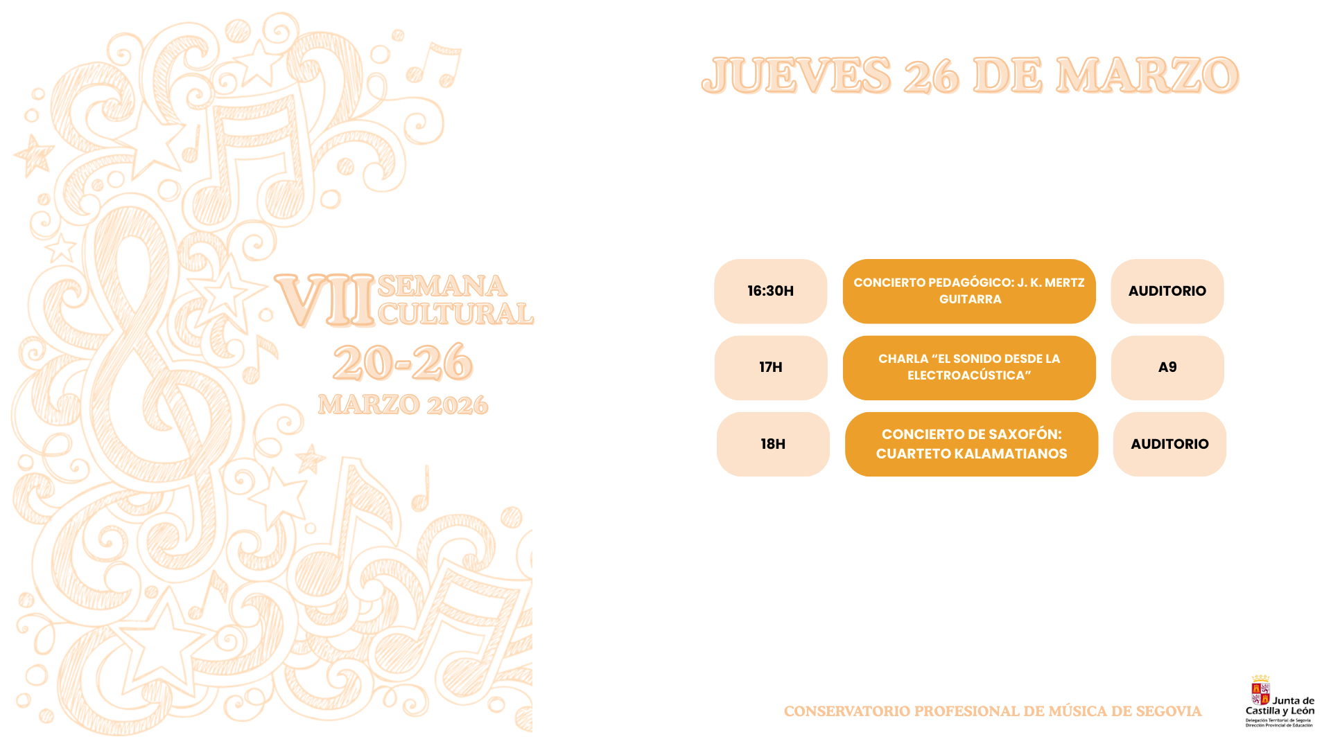 15:30H LOS ÓRGANOS DE LA CATEDRAL DE SEGOVIA* 16H CONCIERTO ALUMNOS "TALENTO" 16H EXPOSICIÓN INSTRUMENTOS DE VIENTO "PUNTOREP" |